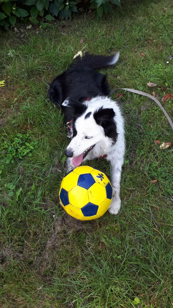 Ici, Juna en promenade régulière d’1h qui a un don pour trouver des ballons !