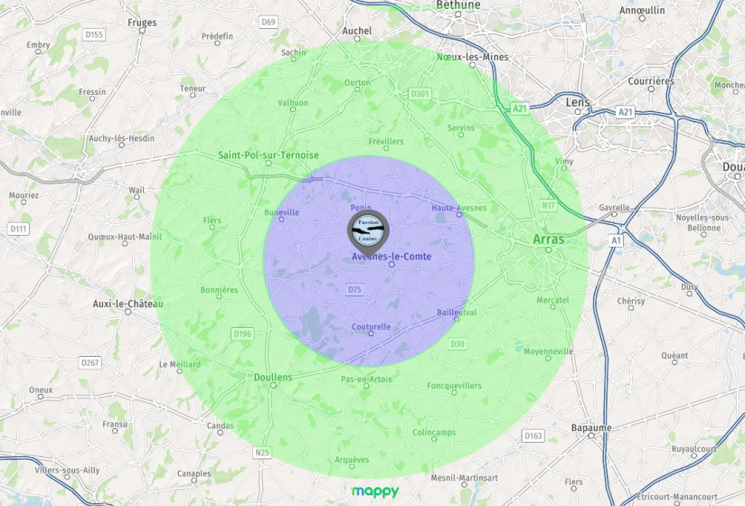 Des frais kilométriques supplémentaires seront à prévoir, à hauteur de 1€ par 5 km.